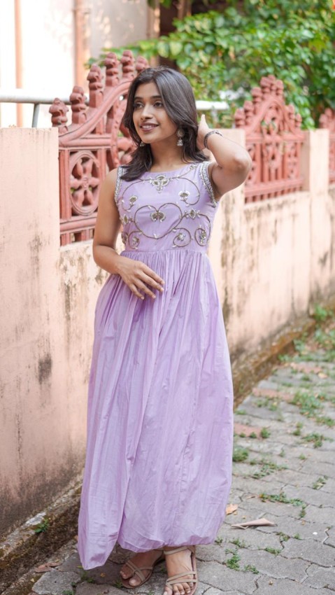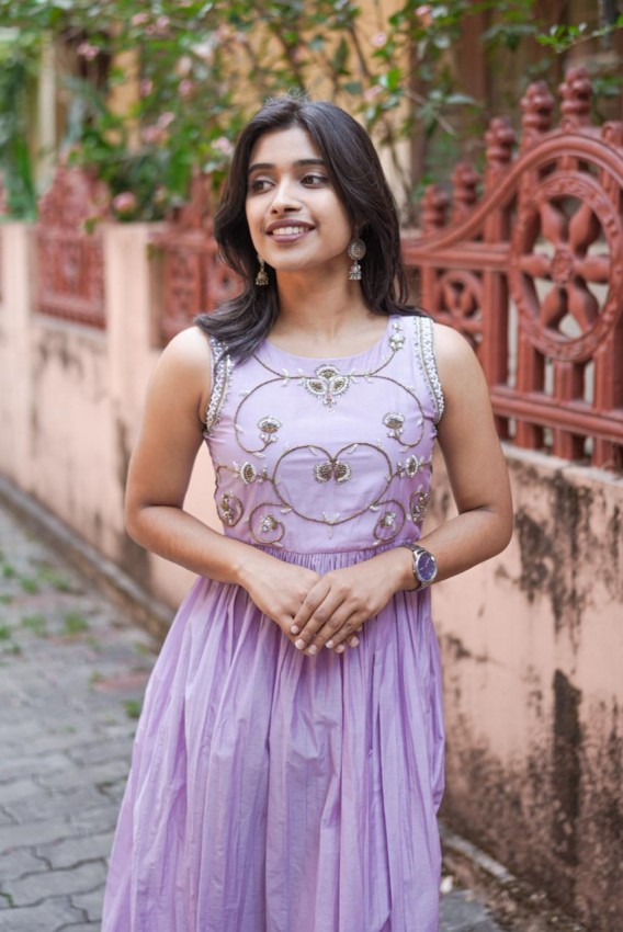 Pure Chanderi Material frill aline top with beautiful handwork of floral motive on yolk ?????