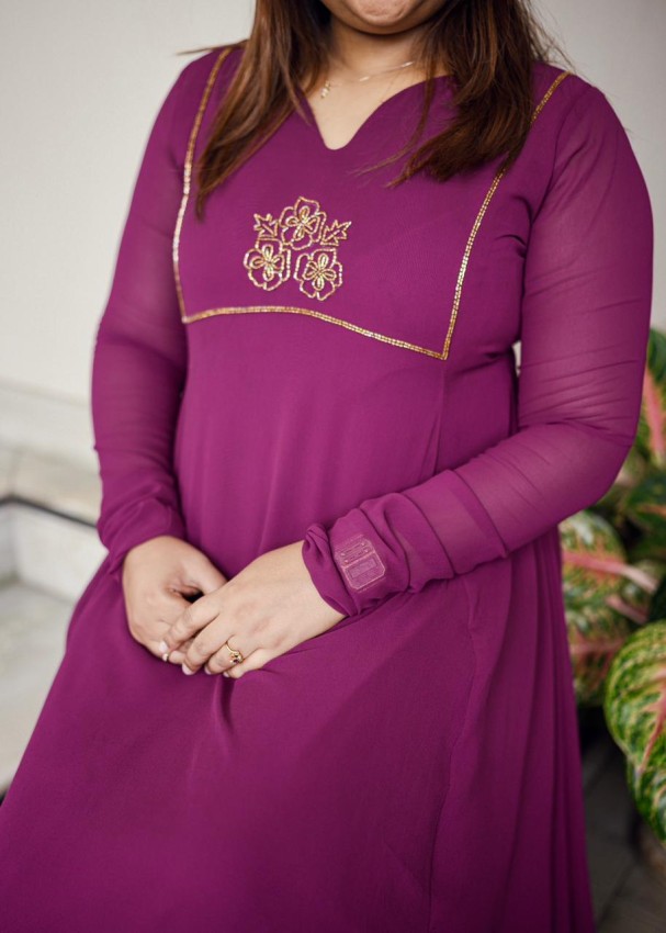Budget friendly 3 panel aline cut top with simple and elegant handwork on yolk with flower motives