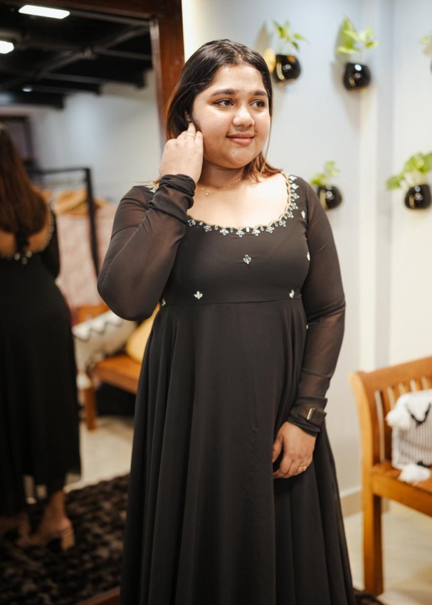 Double flared umbrella cut anarkali with mirror work on front and back neck with churri sleeves