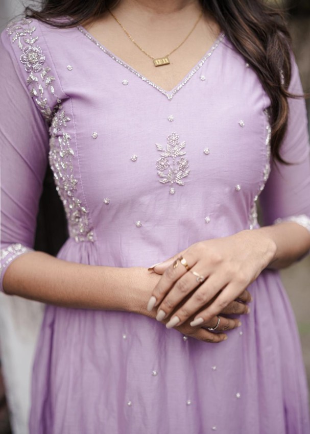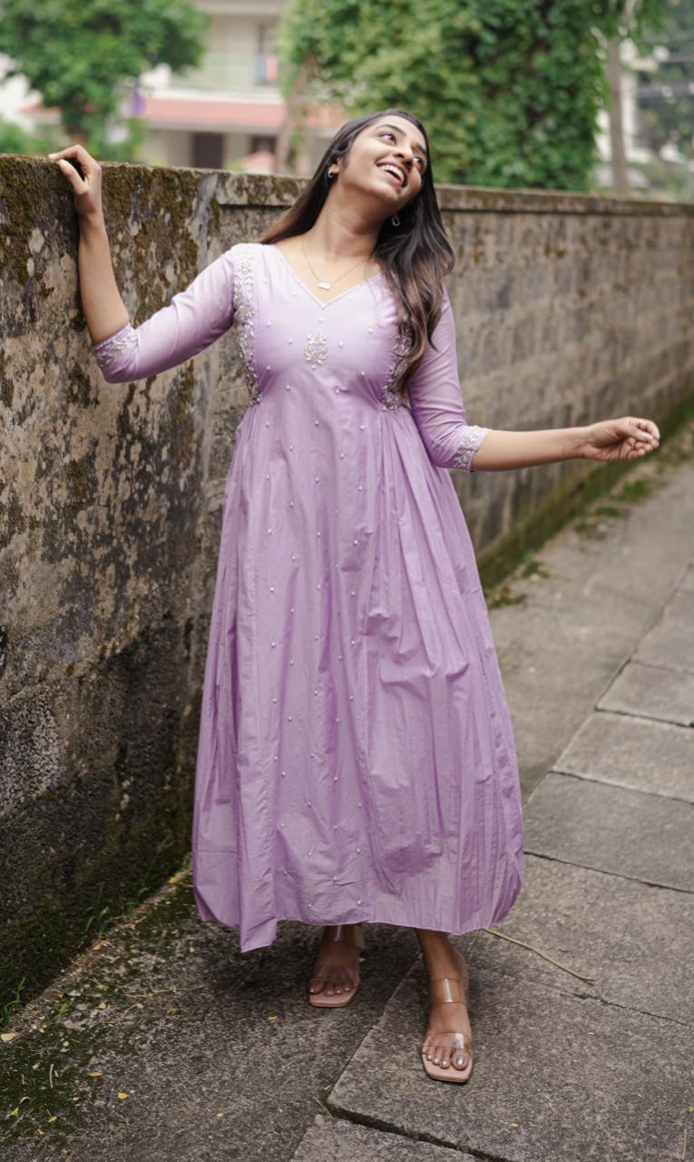 Soft mul chanderi panel frill Aline top with silver handwork all over