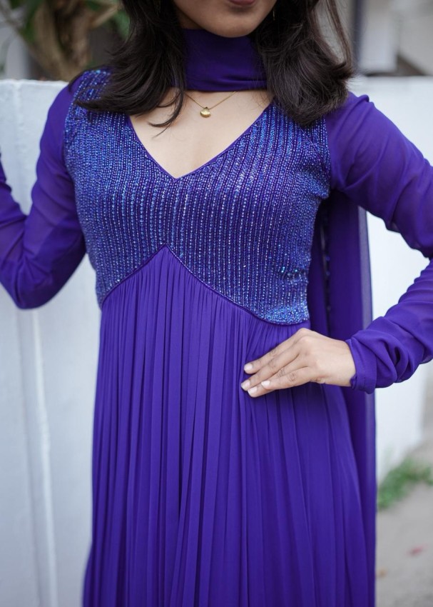 This Alia cut frill aline top in rich royal blue is crafted with full sugar beads and heavy sequin embroidery, giving it an elegant yet festive appeal. The flattering cut and flowy silhouette enhance the overall grace, making it perfect for special occasions. It is paired with a designer dupatta featuring one-side hand embroidery, adding a refined handcrafted touch. Available asap for customization, and can be made in any color of your choice to suit your style.