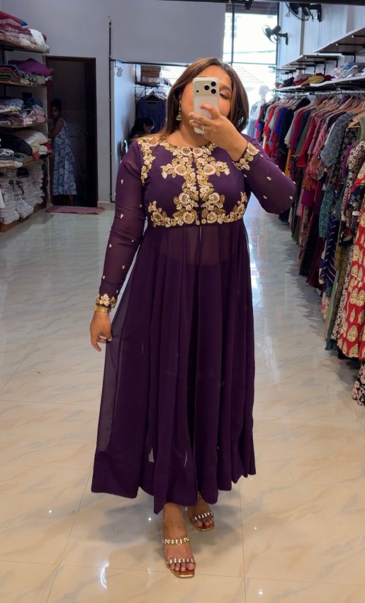 Model wearing- purple COLOUR, panel cut open jacket Anarkali top with semi pencil bottom-