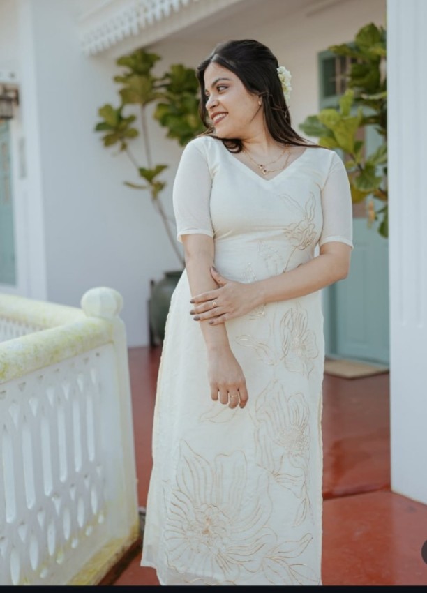 premium Chanderi silk thread embroidery top and bottom set